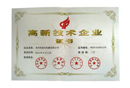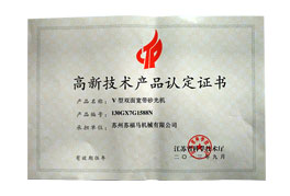 • V型雙面寬帶砂光機高新技術(shù)產(chǎn)品認定證書(shū)