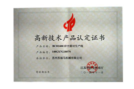 • 砂光鋸切生產(chǎn)線(xiàn)高新技術(shù)產(chǎn)品認定證書(shū)
