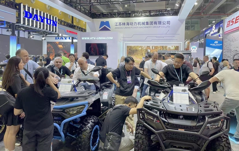 林海集團攜五款主力全地形車(chē)參展,其中全新ATV1000首次對外亮相,交出廣交會(huì )“開(kāi)局亮眼答卷”。此次亮相的全新ATV1000全地形車(chē),配置最新研發(fā)的V型雙缸發(fā)動(dòng)機(LH2V91MY),采用BOSCH電子油門(mén)電噴系統,整車(chē)采用前雙A臂后搖臂式懸掛系統,搭配前后氣囊減震、符合人機工學(xué)的轎車(chē)級座墊、電加熱把手,3種駕駛模式適合不同客戶(hù)群體和使用場(chǎng)景,使用戶(hù)擁有無(wú)與倫比的駕乘體驗。展會(huì )現場(chǎng),該車(chē)型與公司多款適配不同場(chǎng)景的全地形車(chē)共同成為焦點(diǎn),吸引眾多海內外采購商駐足洽談,首日接待量與合作意向數遠超預期,為企業(yè)后續參展注入強勁信心。